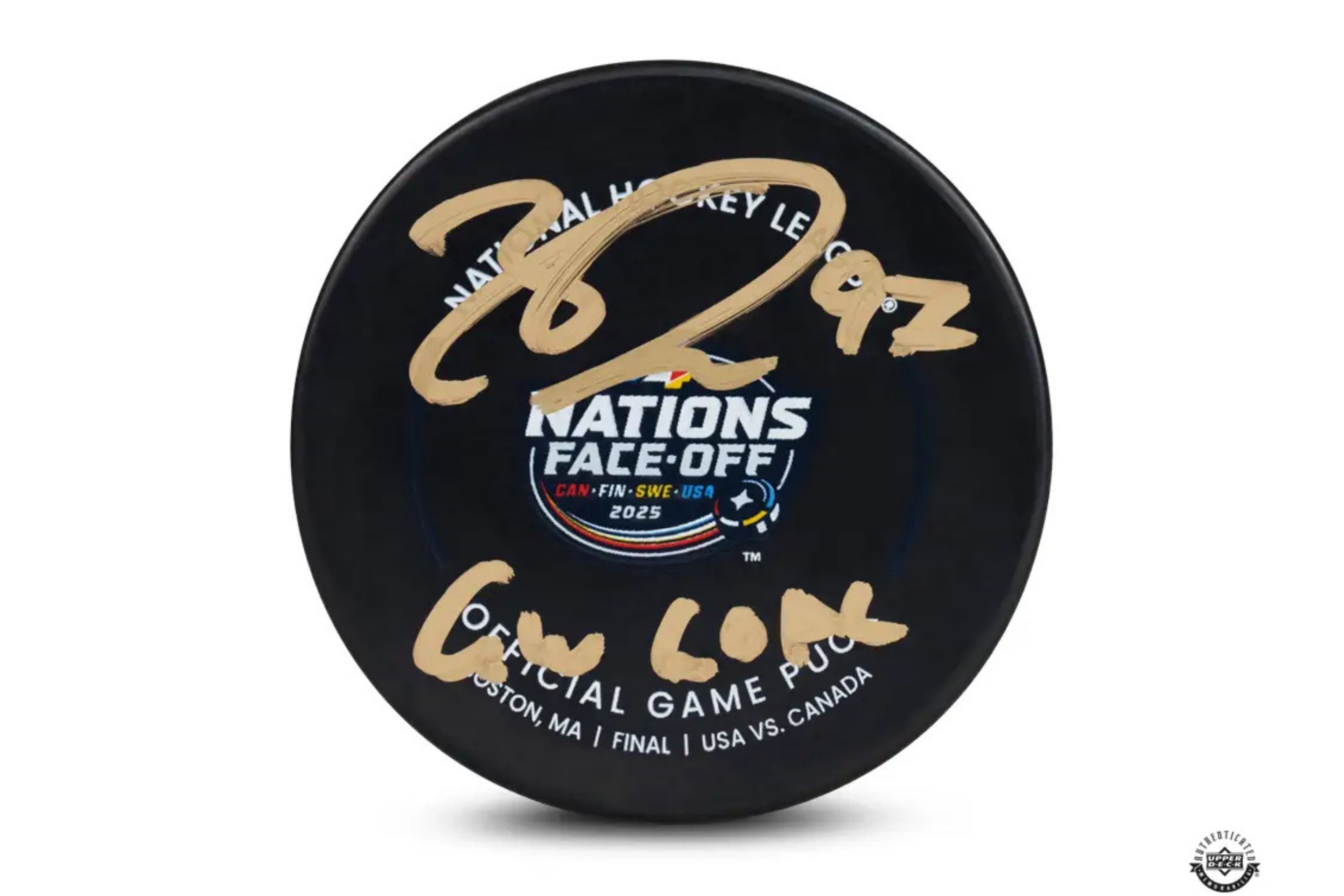 " CONNOR MCDAVID AUTOGRAPHED & INSCRIBED GW GOAL 2025 NHL 4-NATIONS FACE OFF OFFICIAL GAME PUCK "