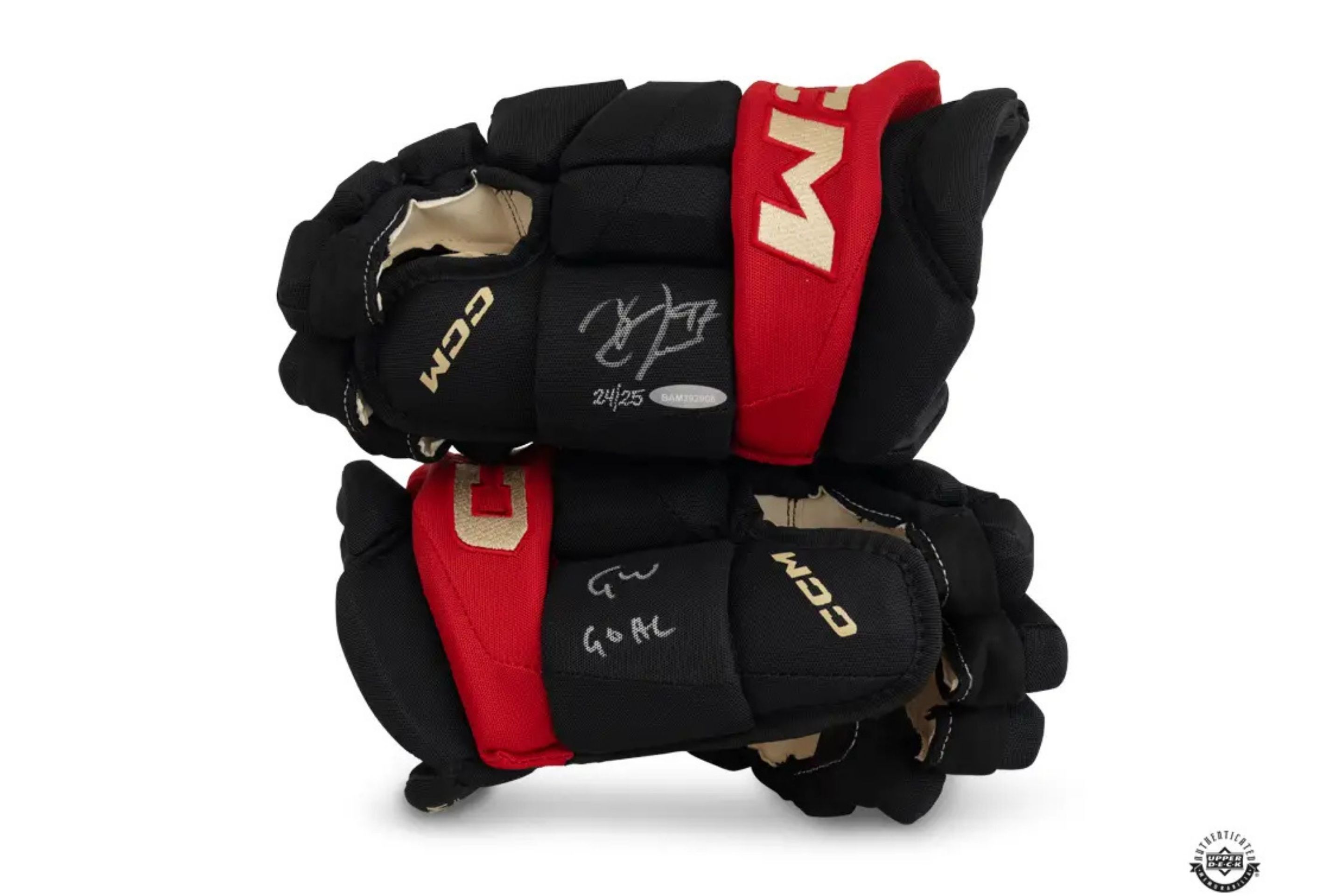 & INSCRIBED GW GOAL CCM BLACK TACKS X AUTHENTIC GLOVES