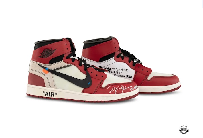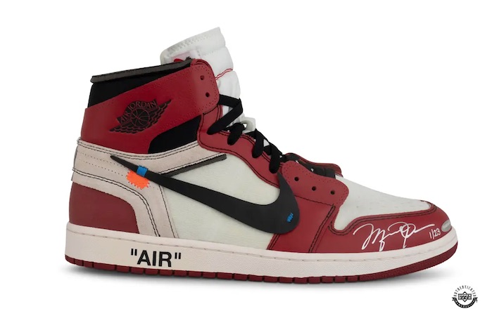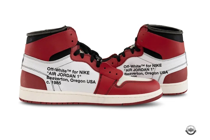 IThe Off-White x Air Jordan 1 Retro High OG stood out as one of the most eagerly awaited footwear collaborations of 2017. It marked a groundbreaking partnership between Virgil Abloh and Jordan Brand. The sneaker has unique characteristics, including an OFF-WHITE zip tie on the collar, a Swoosh connected to the shoe with noticeable blue stitching, and 'Air' printed on the midsole. Initially released in 2017 for $190 USD, it began being resold for prices ranging from $5,300 to $10,000 USD. This collaboration with Virgil Abloh earned the "shoe of the year" award and it continues to fetch high resale prices.