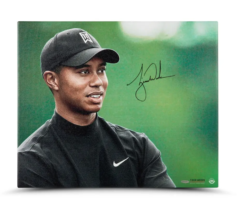 Tiger Woods set the standard in golf that may never be reached again. The winner of 79 PGA Tour events and 14 majors, Woods is one of the most successful athletes of all time. He was one of the longest drivers around when he first joined the Tour, but he eventually reshaped his game with a laser-like focus on mastering the short game. He put it all together for a run during his prime that few have ever even approached. He set records as the top ranked golfer in the world in most consecutive weeks and total number of weeks. This autographed 20" x 24" canvas print is the latest in the line of Up Close & Personal pieces produced by Upper Deck Authenticated. His signature in black paint pen is deemed authentic by virtue of Upper Deck Authenticated's Five-Step Process.
