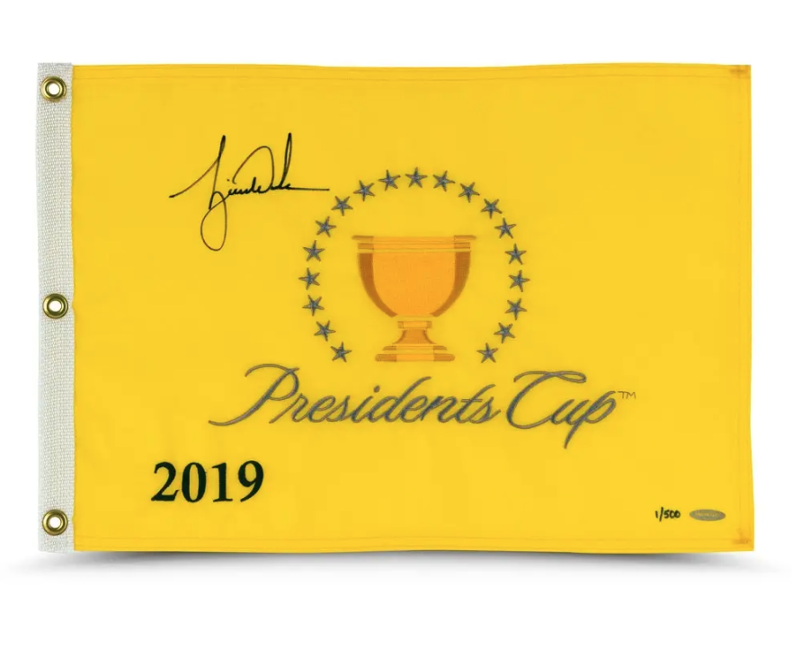 ever since it was first established in 1994. It pits a team representing the United States against a team of international stars minus Europeans. The 2019 version the 13th in the event's history was hosted by the Royal Melbourne Golf Club in Melbourne, Victoria, Australia. The United States team was made up of the top eight players who earned the most FedExCup points over a two-year period as well as four captain's picks. Tiger Woods had already been named captain when an interesting situationarose for his captain's picks. Coming off his record-tying 82nd PGA Tour win at the ZOZO Championship, Woods was arguably the hottest golfer in the world. It was an easy decision and one that elicited questionsfrom nobody when Woods picked himself as the final team member. With the announcement, he became the second-ever playing captain in Presidents Cup history. Hale Irwin was the first and only in 1994. Woods has autographed this limited edition (500) 2019 Presidents Cup pin flag in black paint pen. His signature is deemed authentic by virtue of Upper Deck Authenticated's Five-Step Process.