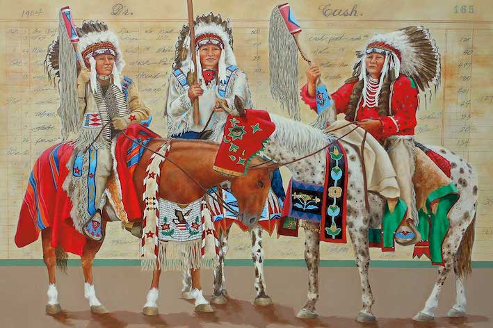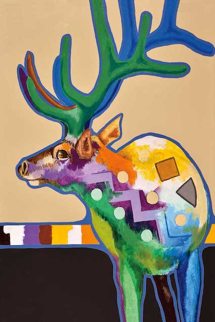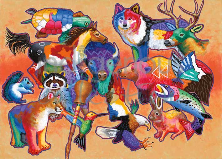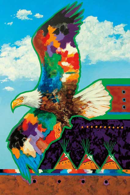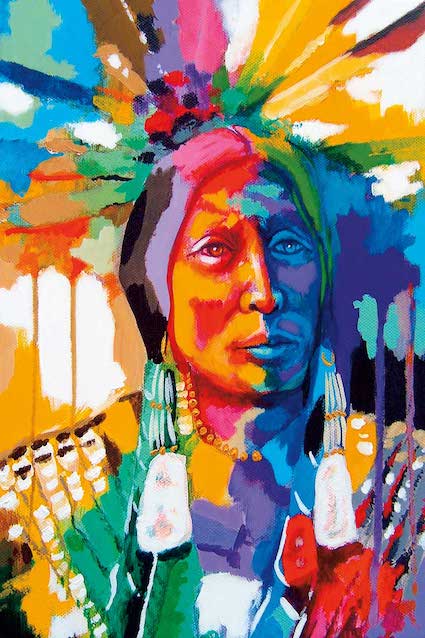 Cultural Background: Western Band of Oklahoma Cherokee. After returning home from Vietnam, John began taking art courses from the local Junior College. Forty years later it has become a business and a way of life. Having a Cherokee father and an English/Irish mother and not being raised on a reservation, art is his way of understanding, keeping alive and honoring his Native Ancestors. Painting in a realistic style for over 30 years, in 2003, John needed to try something new. He began experimenting with color and texture to create a more contemporary look and feel to his work. Now, much of John’s work is more innovative and experimental in nature. Color is the primary means in which the change has occurred. Color is said to be a barometer of emotion and the strong use of color is reflective of a passionate approach to painting. Besides it just looks cool! |