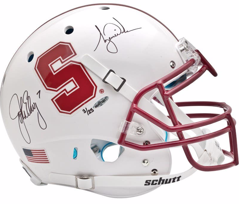 TIGER WOODS & JOHN ELWAY AUTOGRAPHED WHITE STANFORD AUTHENTIC HELMET Autographed Football Helmet