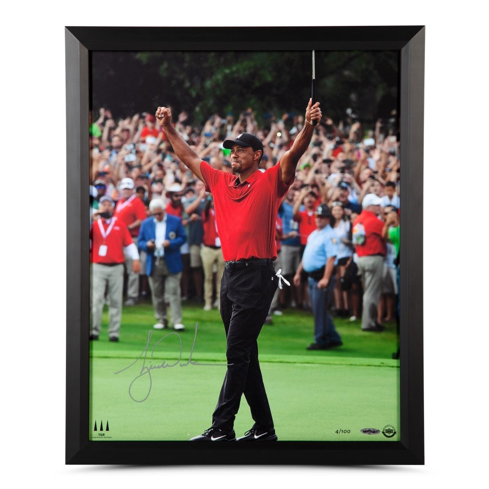 AUTOGRAPHED 50 s/n Limited Edition Mat Tiger Woods’ professional career has spanned seventeen seasons. During this timeframe, Wood’s has amassed the second most PGA Tour victories in the history of golf. Many of these illustrious victories will be ingrained in golf fans heads for years to come. This UDA-treated 16x20 image of Tiger celebrating one of his countless tournament victories is accompanied by a signed black mat and is limited to 50. The framed image with signed mat measures 20 by 30 inches. Woods’ silver signature is deemed authentic by virtue of UDA’s five-step authentication process.