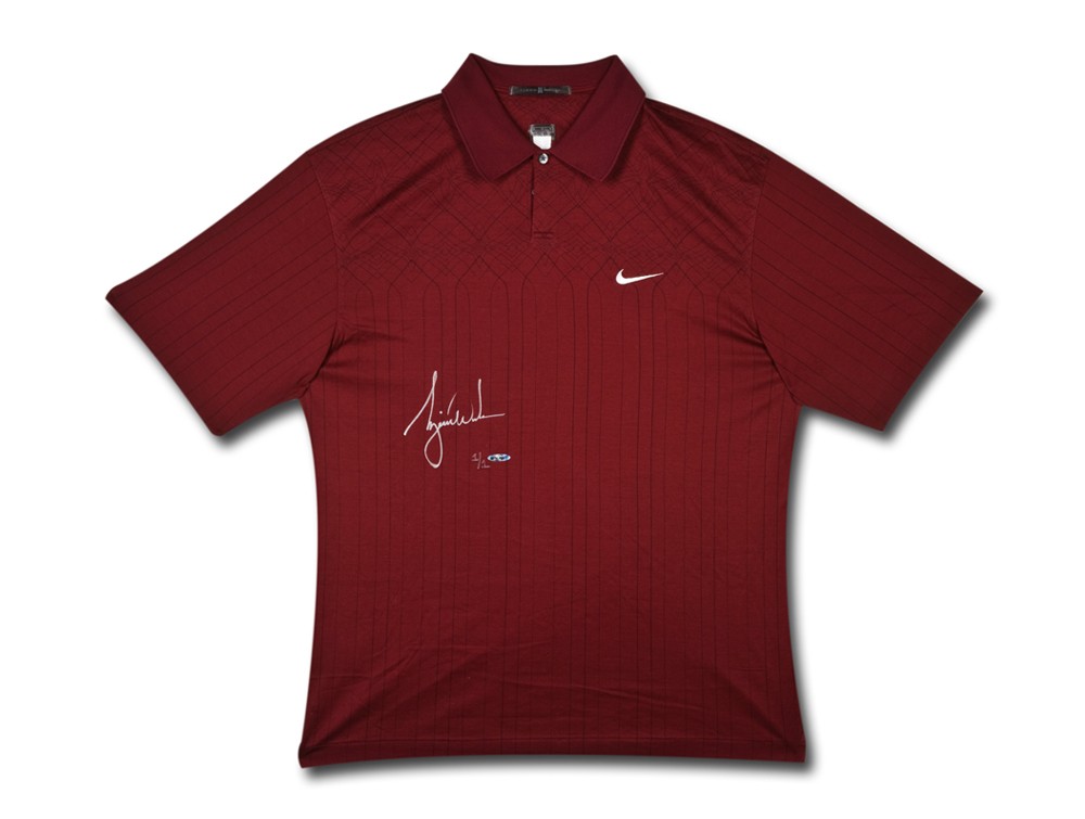 AUTOGRAPHED 1 s/n Limited Edition Shirt Tiger Woods is the all time leader in PGA tournament wins and second in major wins with (14). Woods usually draws the largest gallery of spectators when playing in a tournament. Spectators have become custom to seeing him wearing red on Sunday’s, and any other color under the rainbow between Thursday and Saturday. Tiger wore this Maroon polo during a PGA TOUR, USGA and/or WGC tournament event. This Nike polo is genuine and authentic as being tournament-worn by Tiger Woods and was legally procured directly from Tiger Woods. Tiger's exclusive partner for autographed memorabilia, Upper Deck Authenticated guarantees the authenticity of Tiger's signature on this polo through its Five-Step Authentication Process.