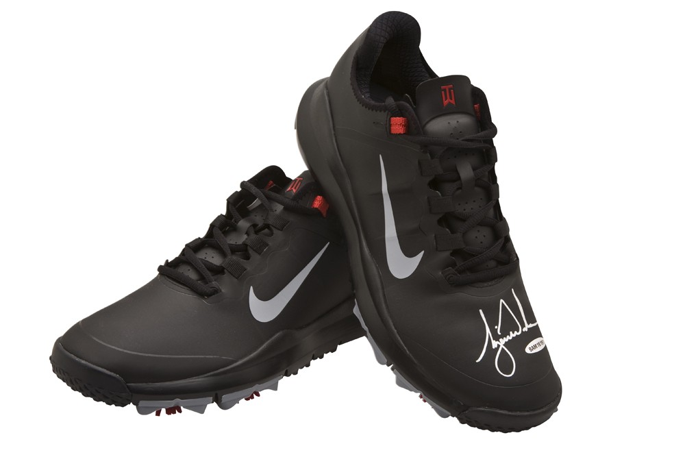 TIGER WOODS Signed Golf Shoes The Nike brand has released some of the most innovative, influential, and unique shoes that the industry has ever seen. Tiger Woods has been part of the Nike family since 1996 when he turned pro. Nike had been in the golf business since 1984, but it was the signing of Woods that elevated the Nike Golf brand. Woods has had his own signature line since day one, when they released his Air Zoom TW and Air Zoom Sport TW shoes. This past June Nike released the TW 13’s, their newest and most innovative Tiger Woods golf shoes yet. The TW 13’s are designed using the Nike ‘Free’ shoe platform technology, and then customized for Tiger Woods. These black retail TW 13’s have been signed by Woods in silver paint pen. His autograph has been authenticated by virtue of UDA's Five-Step Authentication Process.