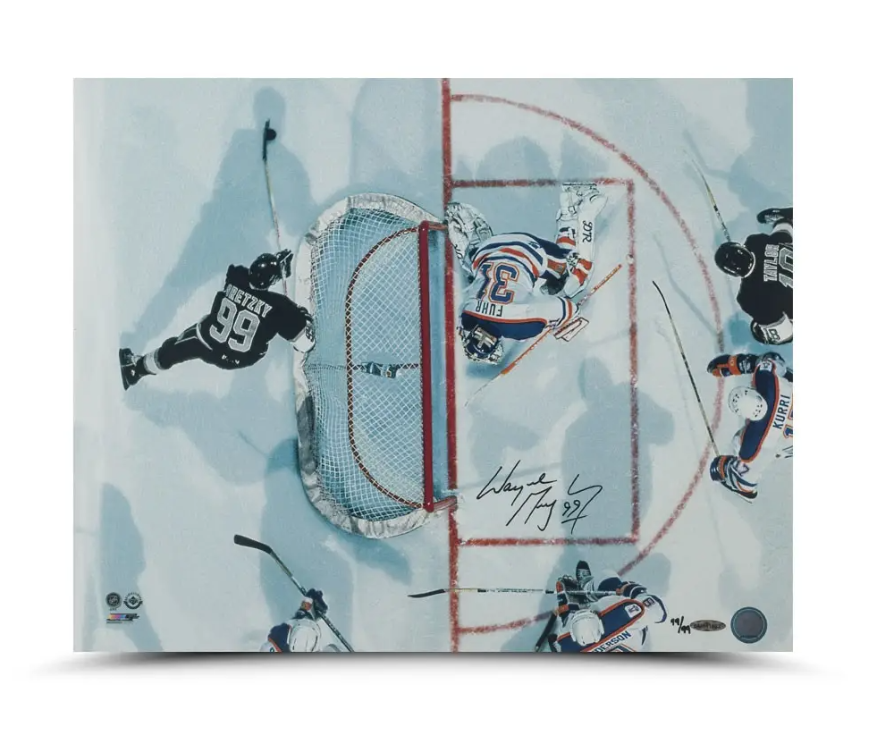 Limited To: 99 Signed By: Wayne Gretzky Type: Autographed Print Size: 16" x 20" Pen Color: Black Special Details: Autographed Print Wayne Gretzky was traded from the Edmonton Oilers to the Los Angeles Kings on August 9, 1988. Gretzky's signature is deemed authentic by virtue of Upper Deck Authenticated's Five-Step Process.