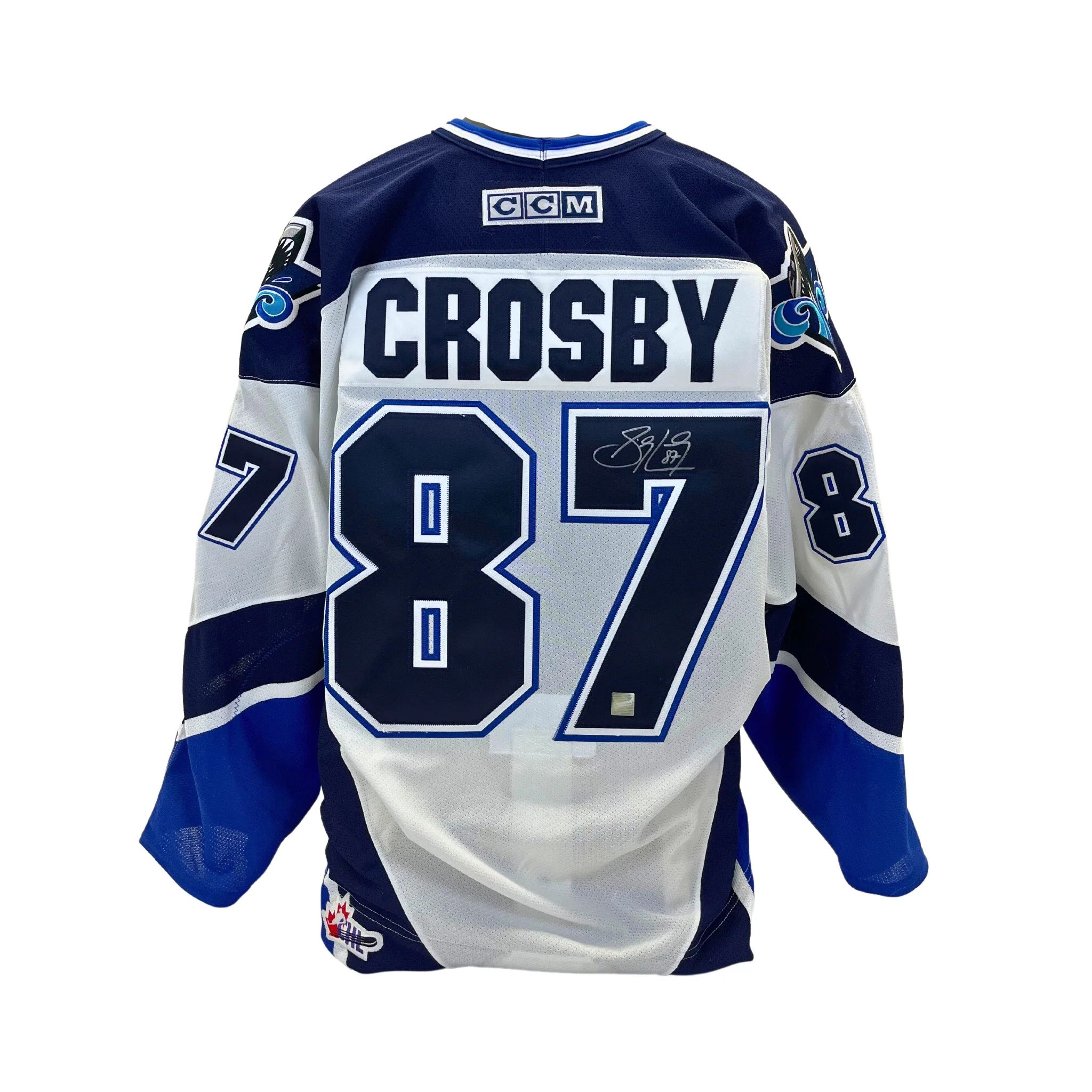 " SIDNEY CROSBY OCEANIC RIMOUSKI WHITE CCM JERSEY " Signed Jersey This Sidney Crosby Rimouski Oceanic jersey with name and numbers professionally sewn on comes personally autographed by Sidney Crosby. This jersey comes with a certificate of authenticity and hologram from Frameworth to ensure authenticity. Signatures may vary.