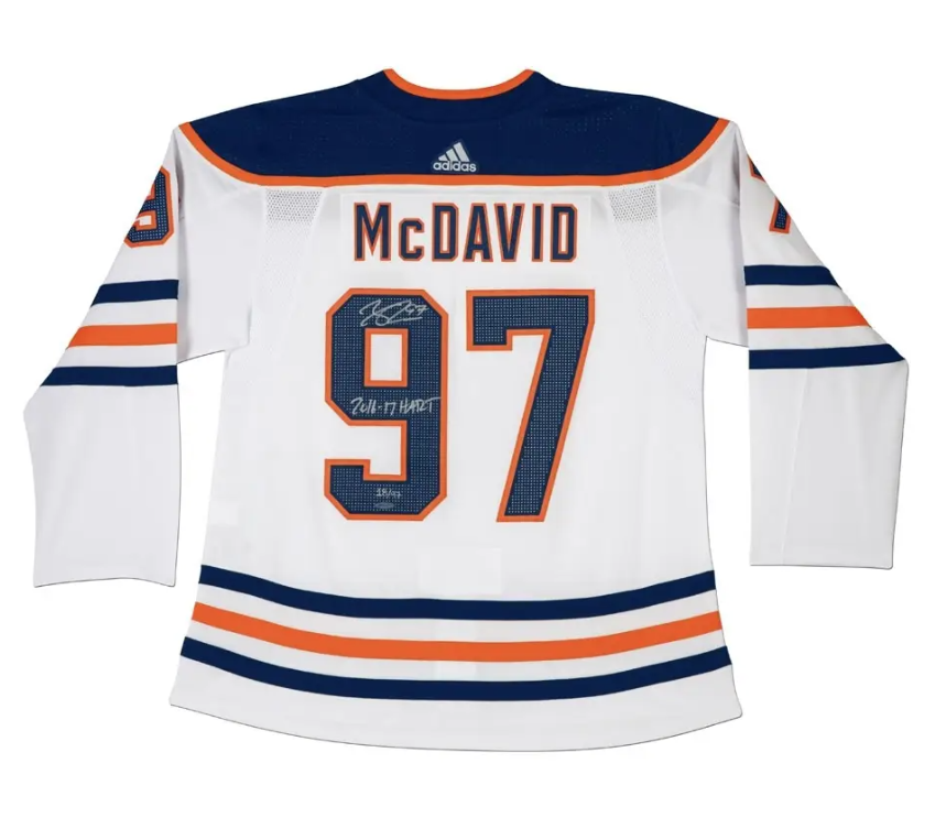Limited To: 97 Signed By: Connor McDavid Type: Autographed Hockey Jersey Pen Color: Silver Special Details: Inscribed "2016-17 HART" The most valuable player award in the National Hockey League is named the Hart Memorial Trophy. This item is limited to 97.