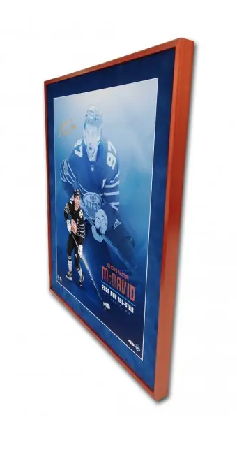 At the age of 24, Connor McDavid has hit the hockey scene with full momentum being named to the NHL All-Star This design from that 2020 season is the framed version that features a sapphire blue mat and tangerine metal frame.