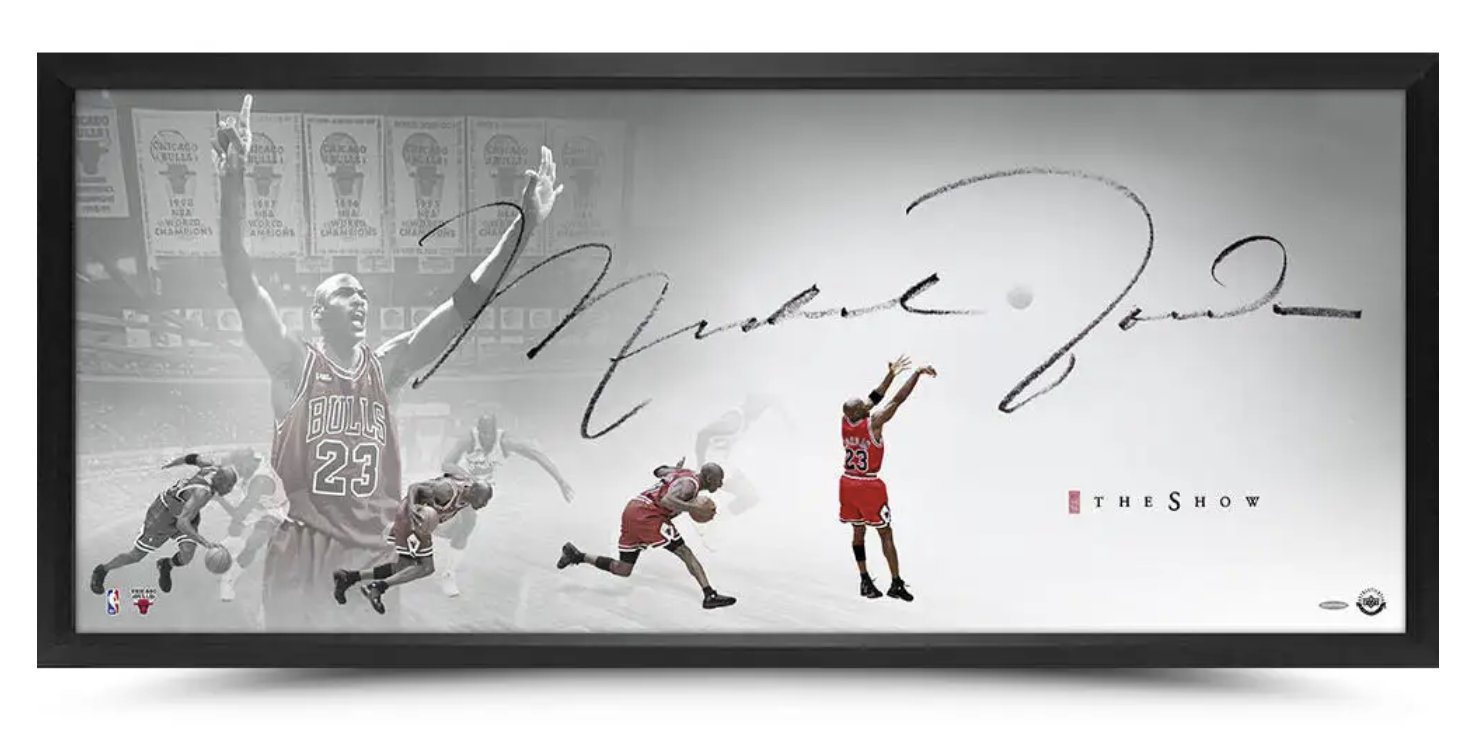 “The Show” text features a designed logo utilizing the simple “MJ” nickname along with the most iconic uniform number