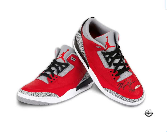 Jordan has autographed these limited edition (23) Nike Air Jordan 3 Retro SE Unite Fire Red shoes in black paint pen.